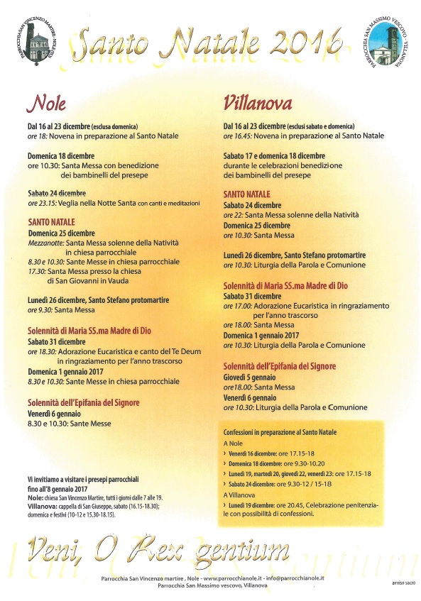 La Parrocchia di S.Vincenzo ha reso noto il calendario delle cerimonie per le festività natalizie.