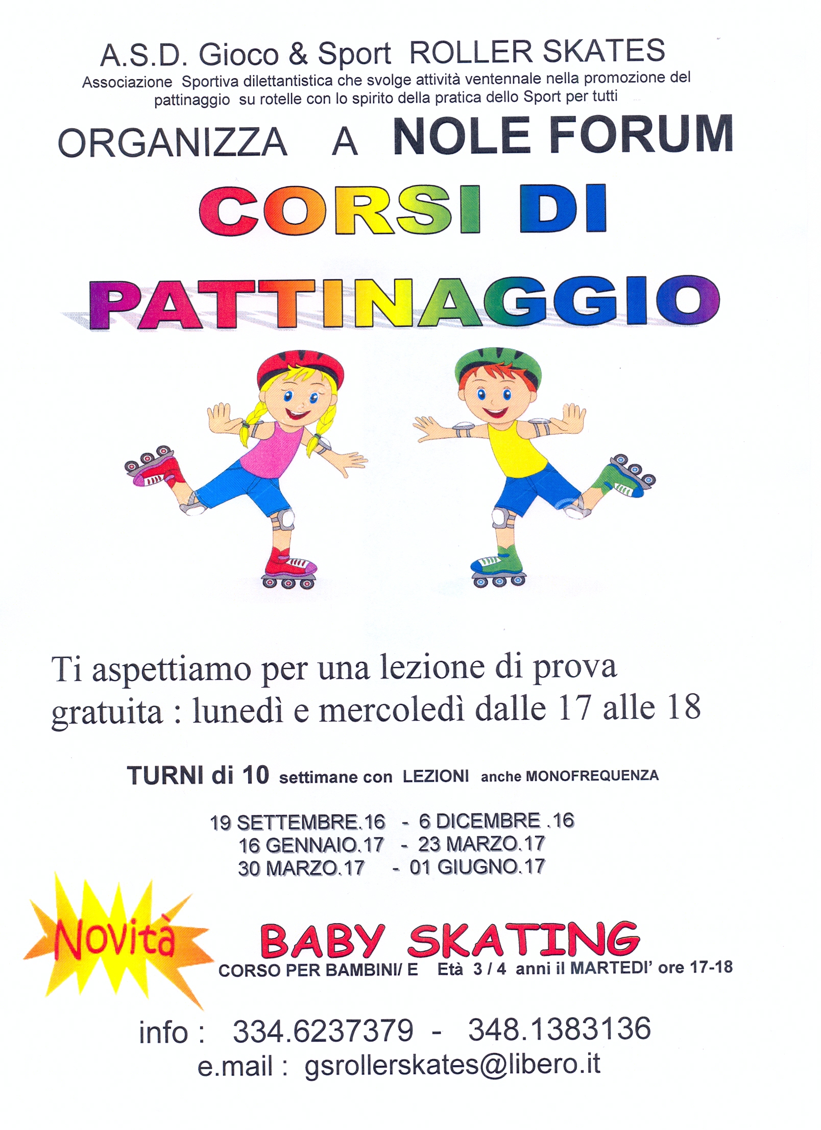 L'associazione Gioco & Sport ROLLER SKATES organizza i corsi di pattinaggio 2016/2017.