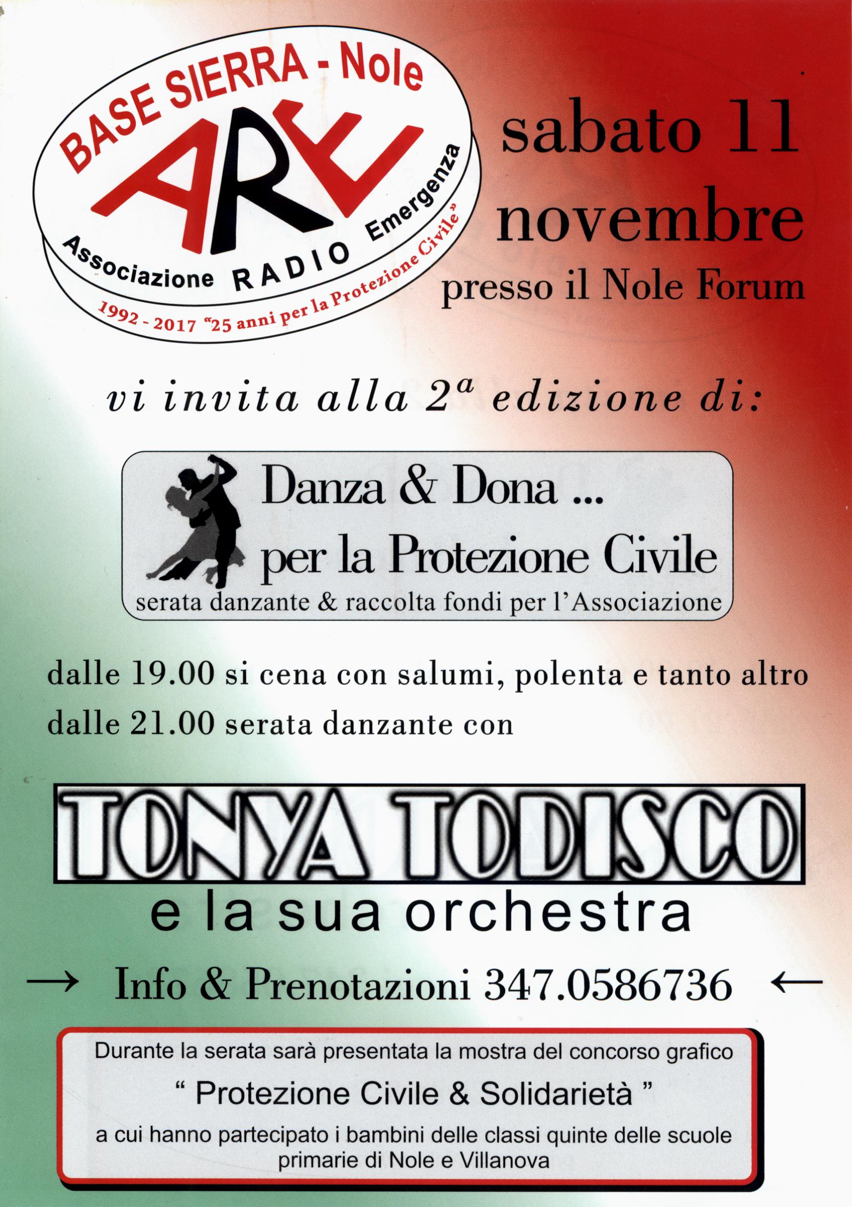 L'Associazione Radio Emergenza "Base Sierra" organizza la seconda edizione di "Danza & Dona... Per la protezione civile", serata danzante & raccolta fondi per l'Associazione.