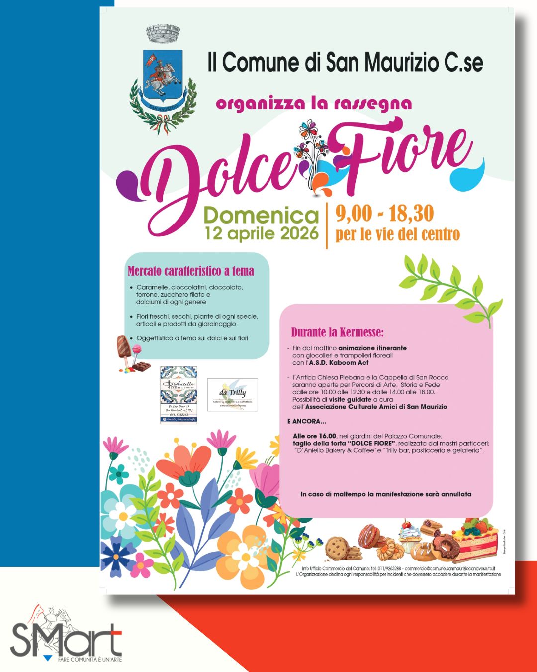 Dolce Fiore 2026: ci siamo! La tradizionale rassegna di primavera organizzata dal Comune di San Maurizio Canavese si svolgerà, come annunciato, domenica 12 aprile.