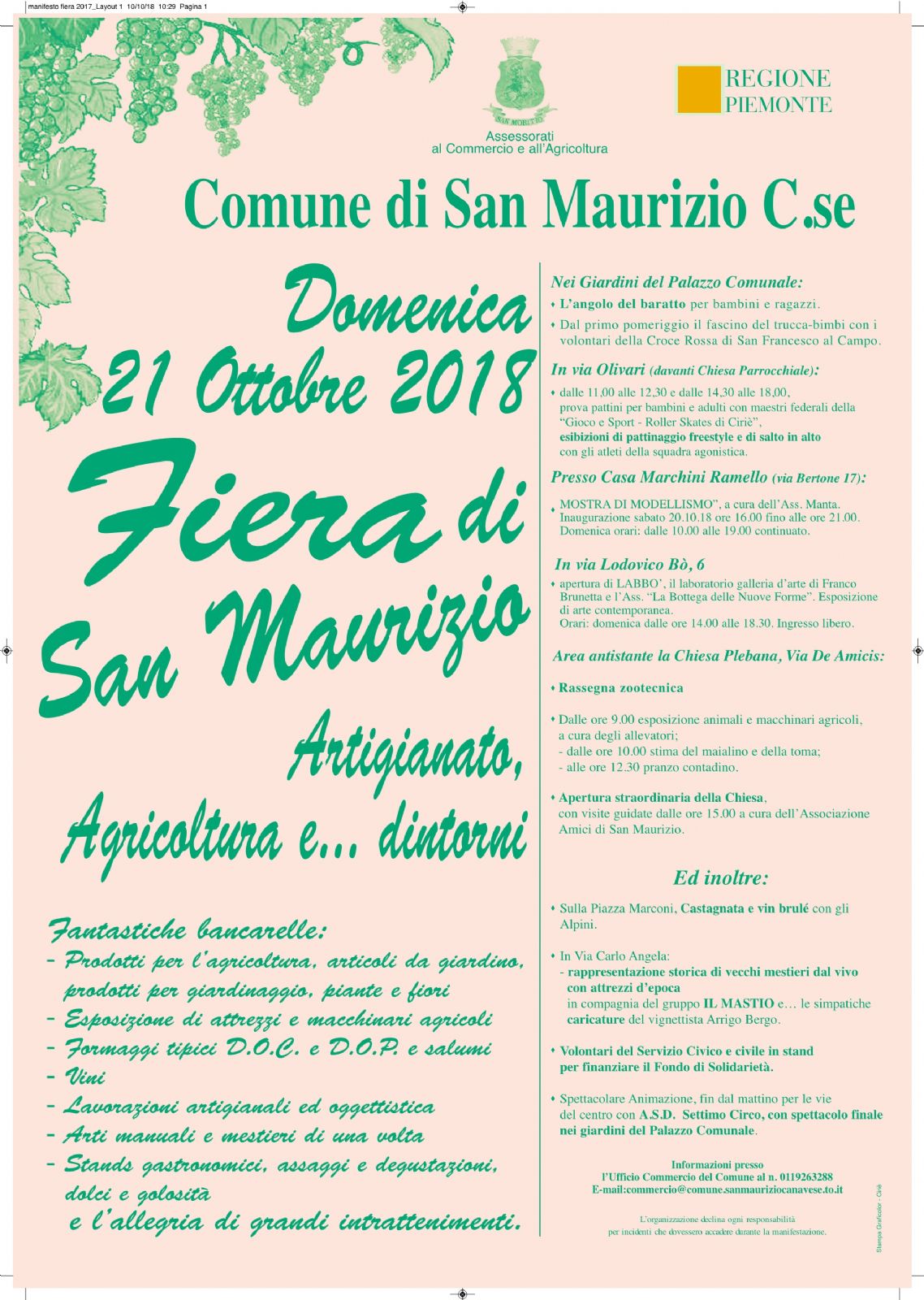 Per informazioni è possibile contattare l'Ufficio Commercio del Comune: tel. 011/9263288, commercio@comune.sanmauriziocanavese.to.it