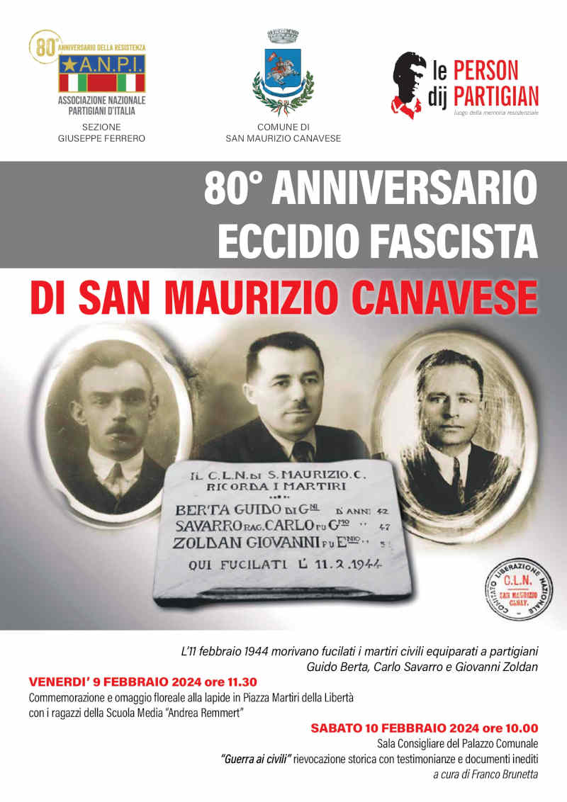 Doppio appuntamento, domani e sabato, per onorare la memoria dei civili fucilati nell'"eccidio di San Maurizio Cnaavese" di 80 anni fa.