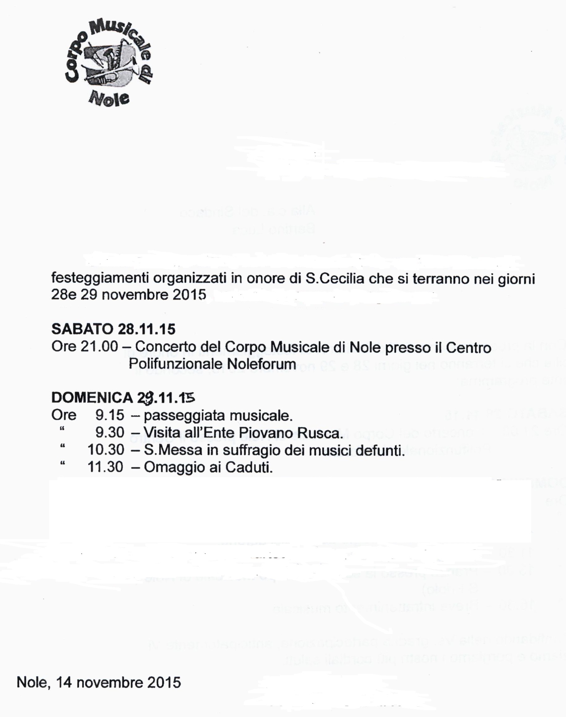 FESTA DI SANTA CECILIA CON IL CORPO MUSICALE DI NOLE