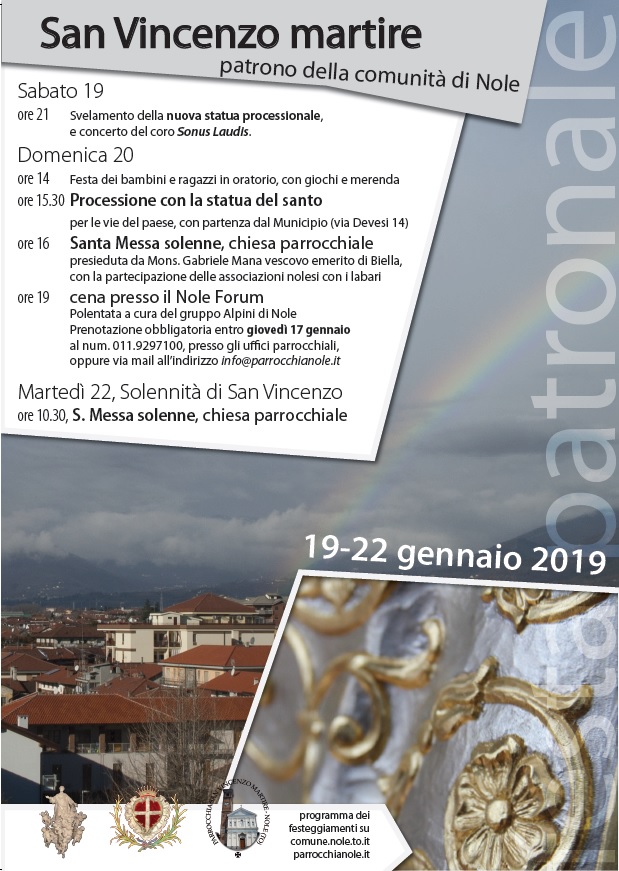 -Ore 19 cena presso il Nole Forum di via Devesi (prenotazione obbligatoria entro venerdì 17 gennaio (Tel.0119297100 - mail info@parrocchianole.it)