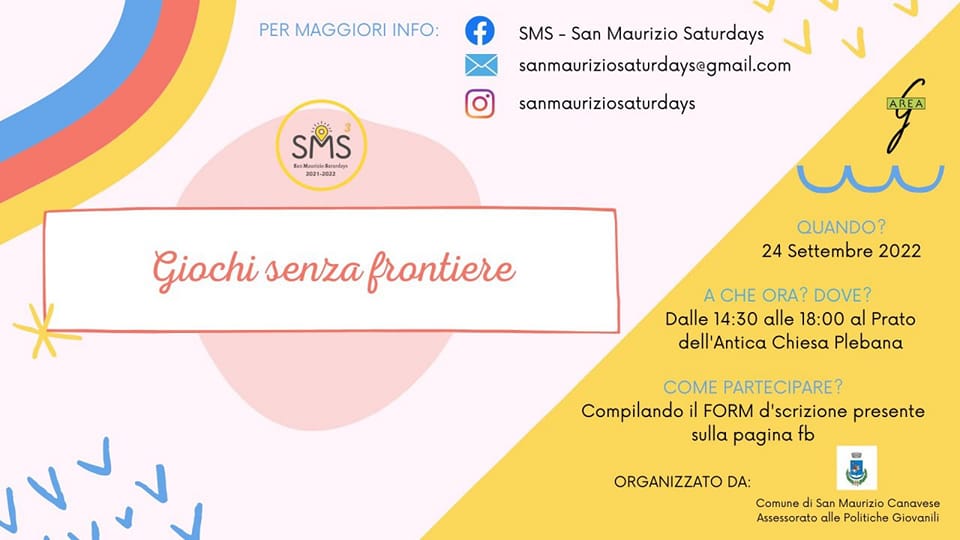 Sono aperte le iscrizioni per i Giochi senza frontiere di sabato 24 settembre, organizzati nell'ambito del progetto per i giovani e i giovanissimi del paese “SMS San Maurizio Saturdays”.