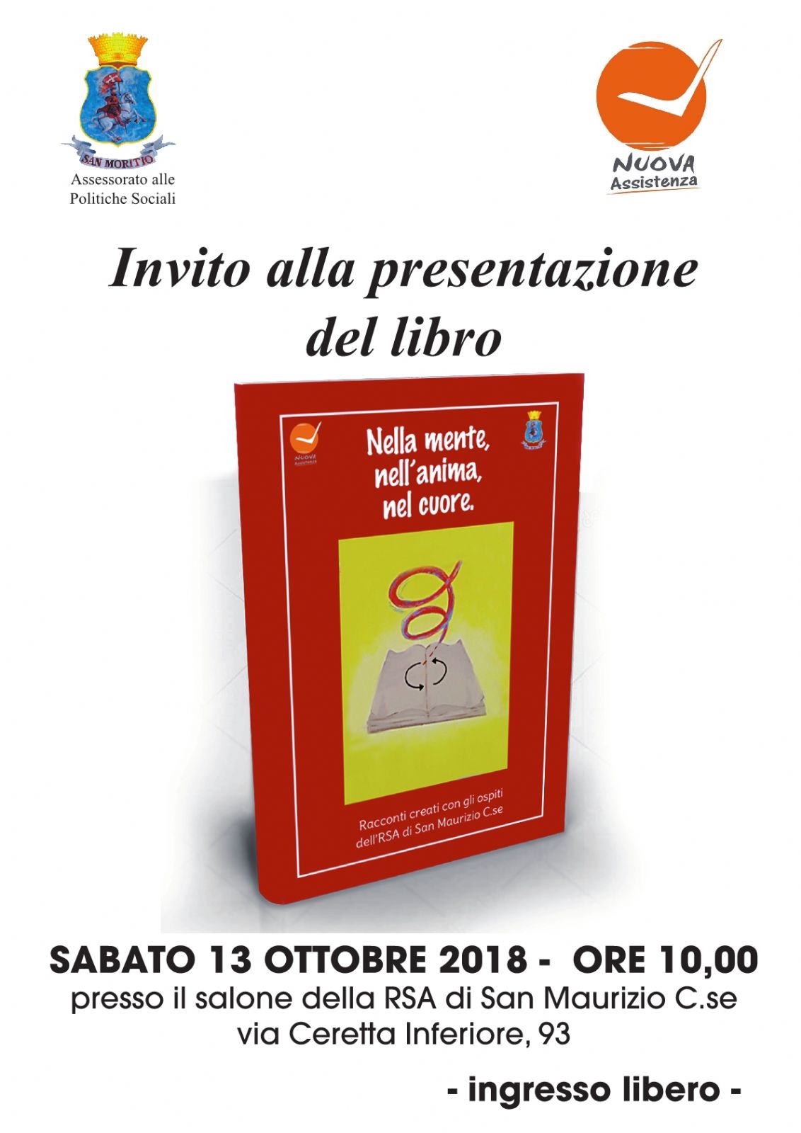 Il libro "Nella mente, nell'anima, nel cuore" raccoglie i frutti del laboratorio di scrittura creativa che gli educatori della RSA hanno condotto insieme agli anziani ospiti. Frutti talmente preziosi e soprendenti da essere pubblicati, con il concorso attivo del Comune di San Maurizio Canavese. Come il laboratorio è stato un percorso importante per coinvolgere gli anziani invitandoli a mettere in campo le proprie capacità, esperienze ed emozioni, allo stesso modo la pubblicazione del libro e la sua presentazione alla comunità costituiscono un'iniziativa altrettanto importante per "aprire" sempre più la stuttura all'esterno e favorirne con sempre maggiore impegno lo scambio con i bambini, i giovani, le famiglie e gli altri anziani del paese. Uno scambio assolutamente alla pari, perché ciò che noi possiamo offrire ai nostri anziani ospiti nelle case di riposo è ampiamente compensato e superato dall'affetto, dall'esperienza e dalle emozioni che loro regalano a noi. La presentazione del libro – sabato 13 ottobre alle ore 10 nel salone della RSA di San Maurizio Canavese, via Ceretta Inferiore 93 – sarà appunto uno di questi momenti di scambio, di conoscenza e di apertura. Tutta la popolazione è invitata a intervenire e ad applaudire il lavoro degli anziani: resterete sorpresi da ciò che leggerete.
