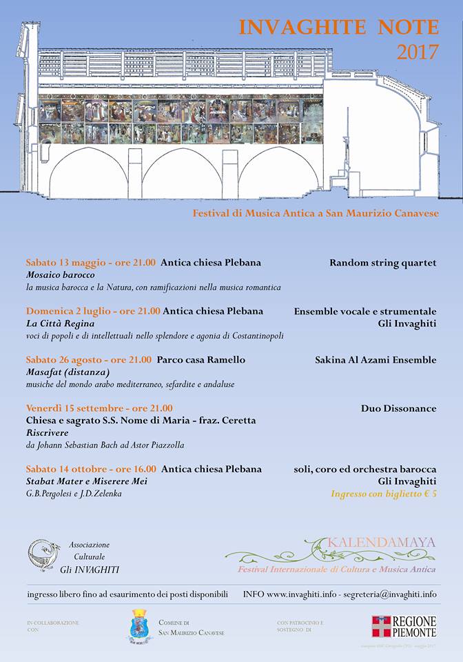 Domenica 2 luglio, secondo concerto della rassegna “Invaghite Note”, il festival di musica antica organizzato dall'associazione culturale “Gli Invaghiti” in collaborazione con l'Assessorato alla Cultura del Comune di San Maurizio Canavese, giunto ormai alla nona edizione. Alle ore 21, nell'Antica Chiesa Plebana, l'ensemble vocale e strumentale "Gli Invaghiti" proporrà "La Città Regina - Voci di popoli e di intellettuali nello splendore e agonia di Costantinopoli".