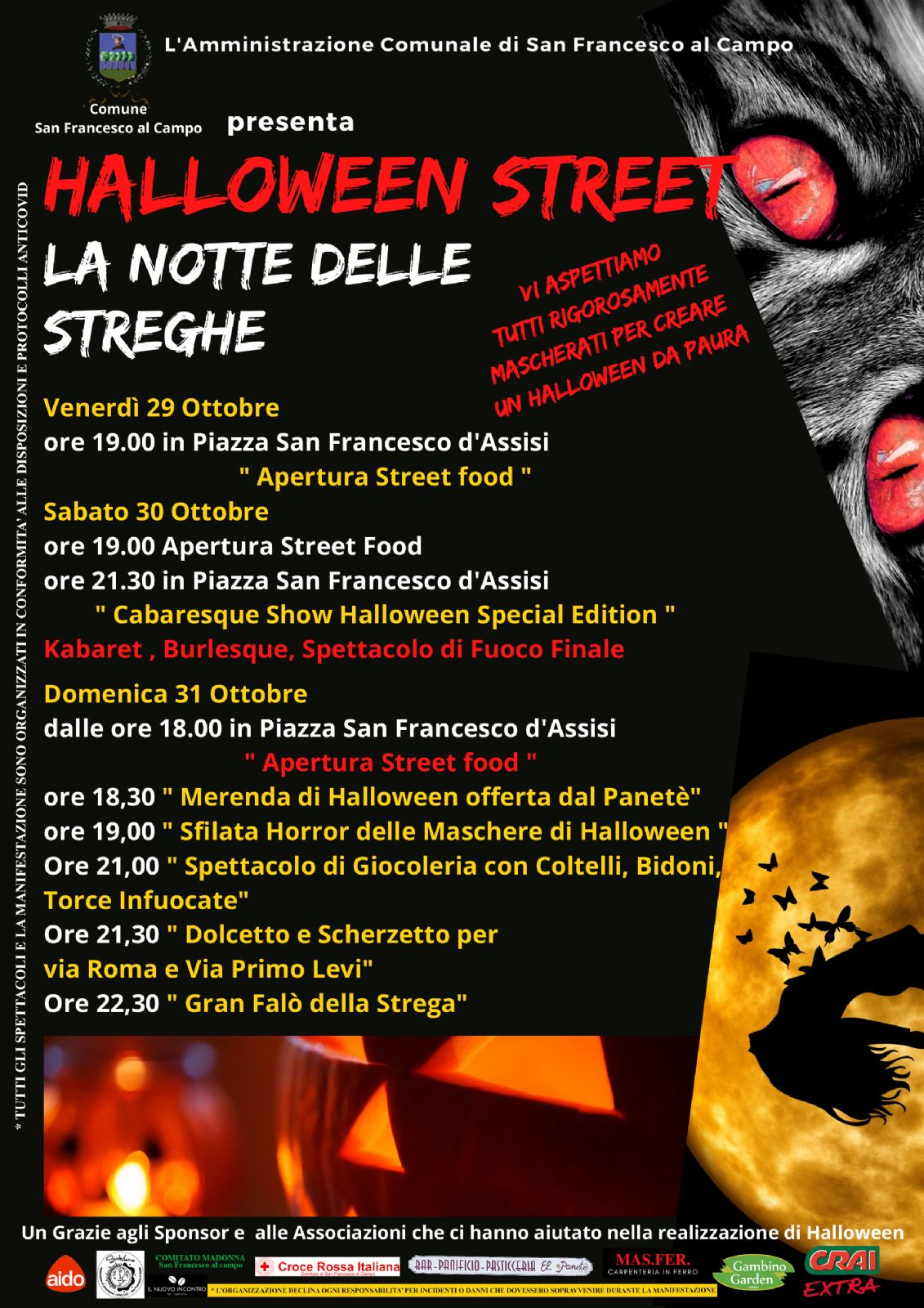 - Domenica 31 merenda, spettacoli, sfilate, dolcetto e scherzetto e, infine, Gran Falò della Strega.