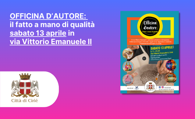 Il fatto a mano di qualità: sabato 13 aprile a Ciriè in Via Vittorio Emanuele II dalle ore 09,00 alle ore 19,00 shopping, fantasia e relax