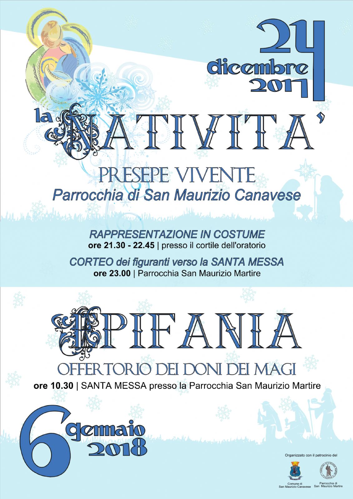 Doppio, speciale appuntamento nel segno della tradizione in occasione delle festività natalizie. La Parrocchia di San Maurizio Martire, con il patrocinio del Comune, propone un bellissimo presepe vivente nella notte di Natale. La rappresentazione in costume avrà luogo nel cortile dell'oratorio dalle 21.30 alle 22.45. Poi, alle 23, i figuranti in corteo raggiungeranno la chiesa per la messa di Natale. Il 6 gennaio, festa dell'Epifania, alle 10.30 sarà celebrata la messa, con un altro suggestivo evento: l'offertorio dei doni dei Magi.