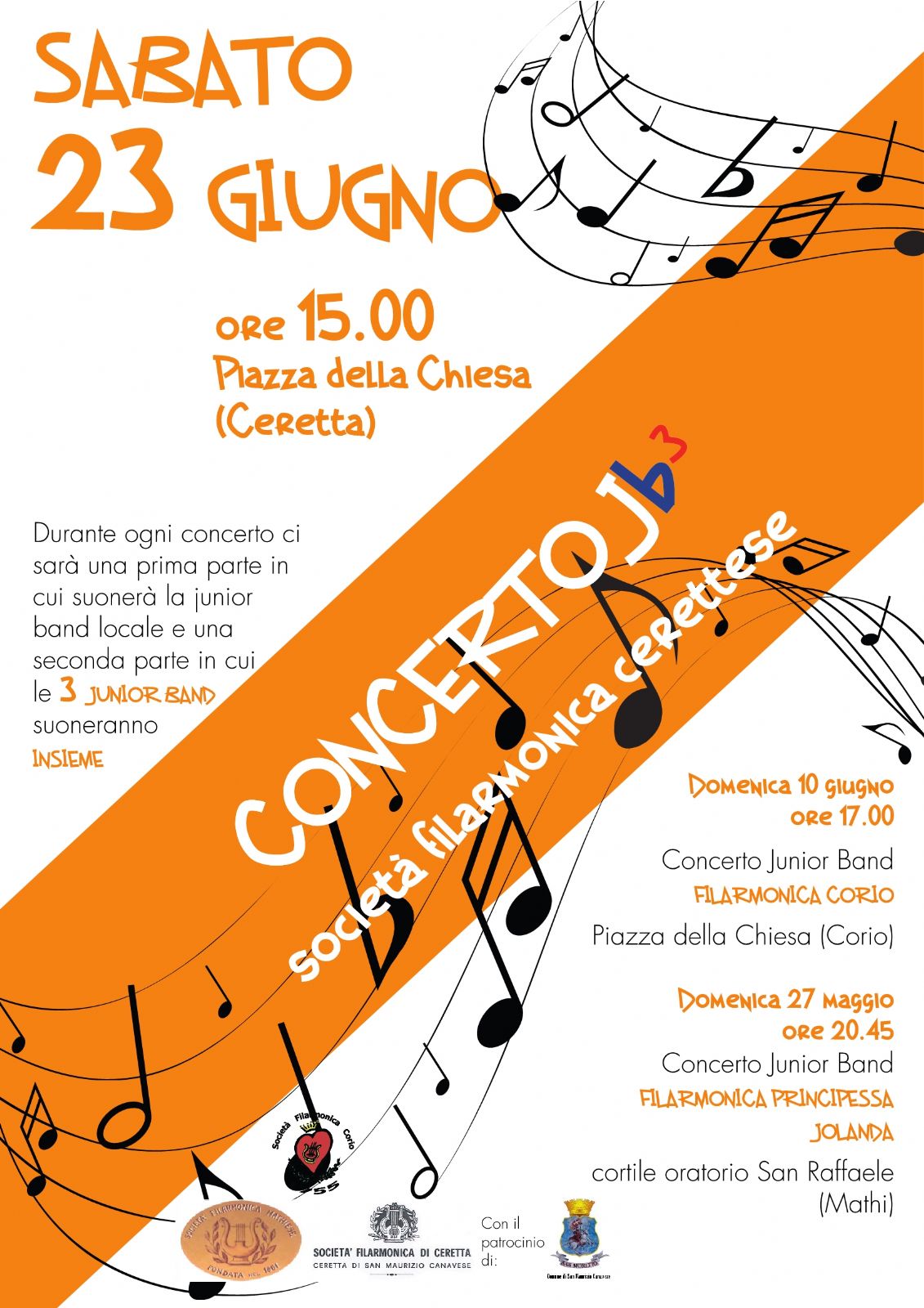 Sabato 23 giugno alle ore 15. Attenzione però: non sulla piazza della chiesa ma, date le temperature di questi giorni, nel salone parrocchiale. Un pomeriggio di grande musica, con i ragazzi delle Junior Band.