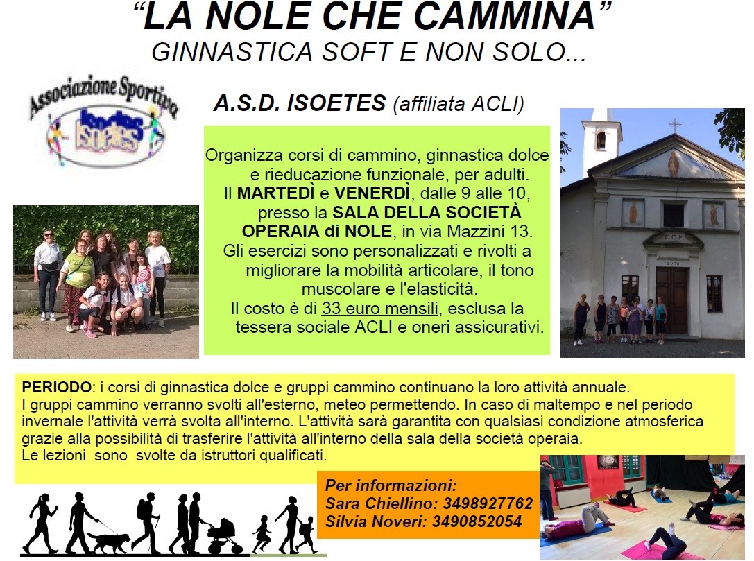 I corsi si terranno il martedì e il venerdì dalle 9 alle 10 presso la sala della Società Operaia di Nole (via Mazzini 13).