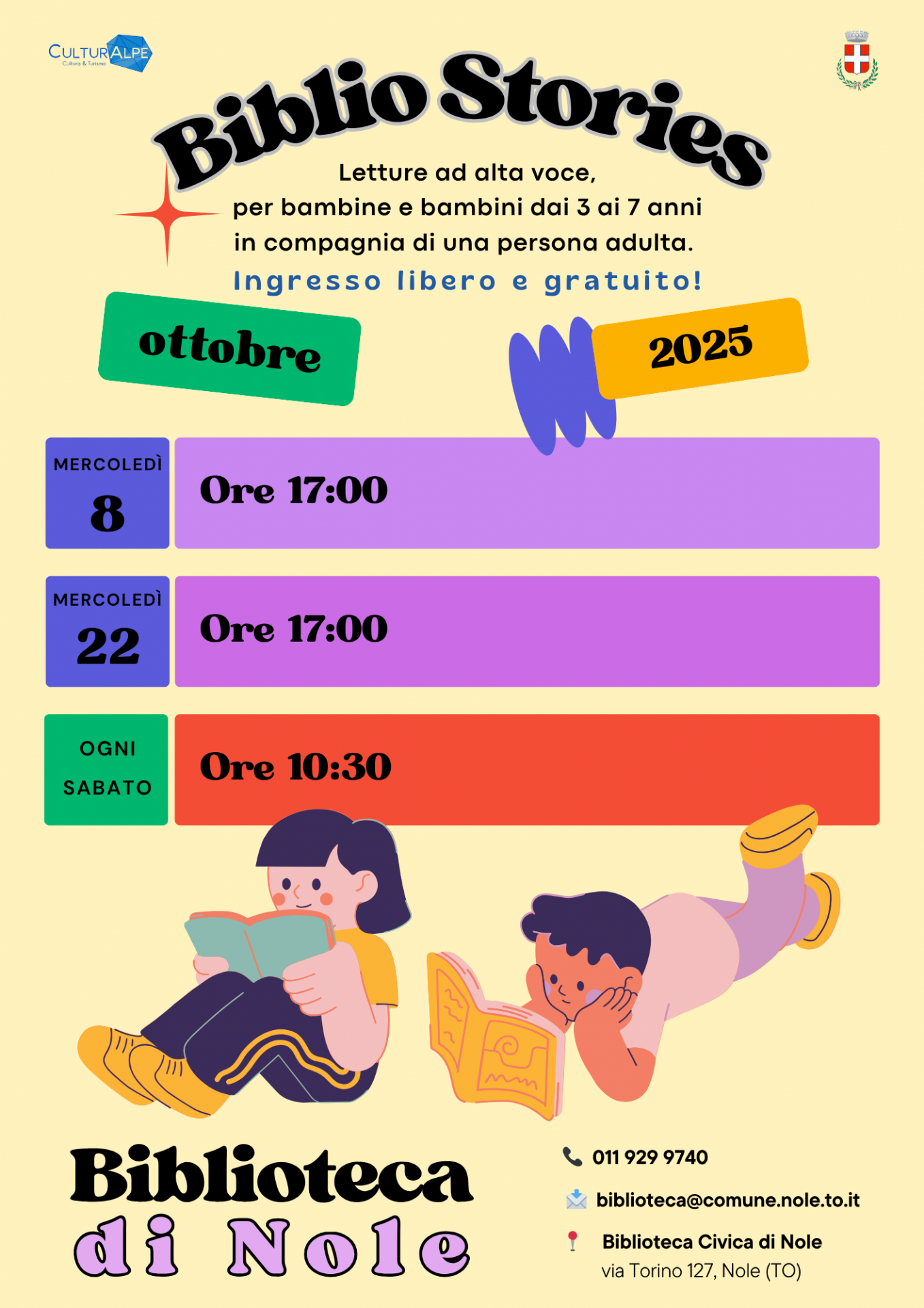 Ottobre sarà un mese ricco di letture alla biblioteca di Nole! Vi aspettiamo.