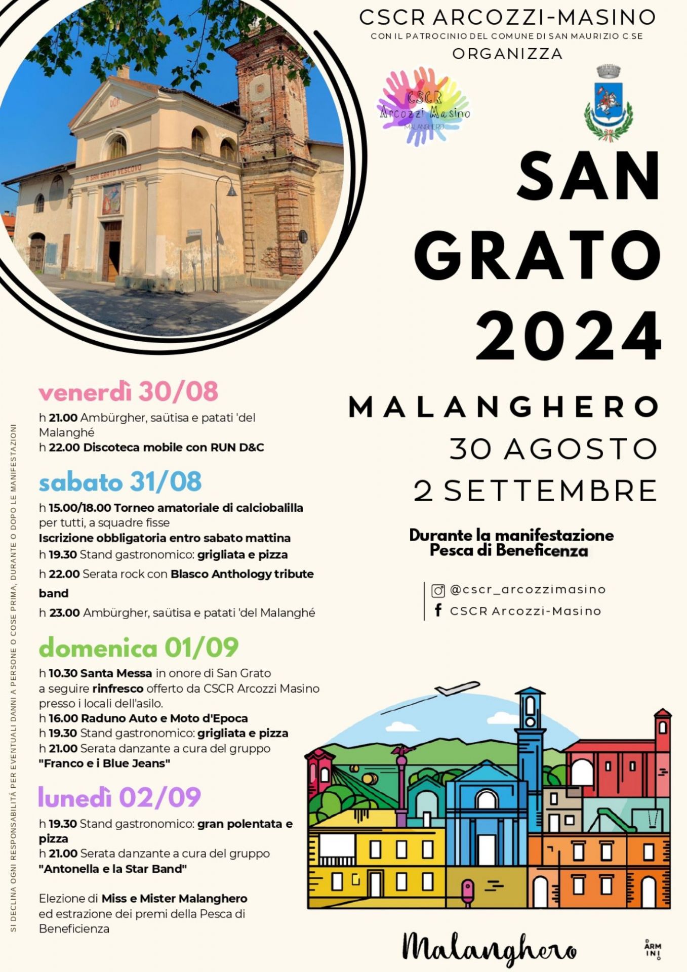 Si prepara il tradizionale "trittico" delle patronali in paese e, come sempre, ad aprire le danze è la frazione Malanghero: da venerdì 30 agosto a lunedì 2 settembre, tutti alla festa in onore di San Grato!