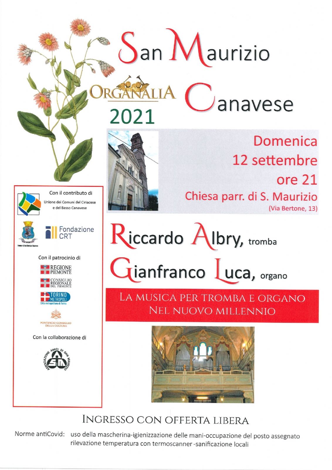 Domenica 12 settembre, alle ore 21, nella chiesa parrocchiale di San Maurizio Martire, si esibiranno per noi Riccardo Albry (tromba) e Gianfranco Luca (organo). Tema della serata, la musica per tromba e organo nel nuovo millennio.