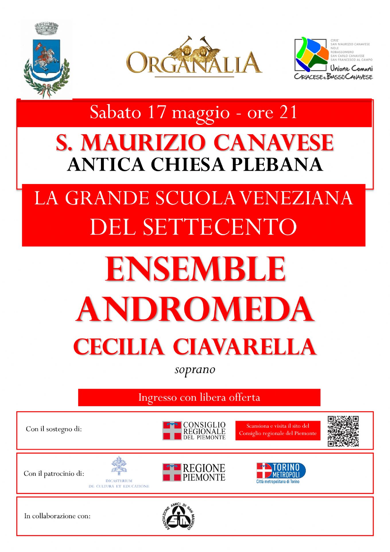 Organalia, l'ormai celebre rassegna concertistica per la promozione della musica organistica e strumentale sul territorio, farà tappa a San Maurizio Canavese con un primo concerto sabato 17 maggio. L'appuntamento è nell'Antica Chiesa Plebana alle ore 21 con il barocco veneziano. L'Ensemble Andromeda proporrà infatti una serata su "La grande Scuola Veneziana del Settecento", con musiche di Vivaldi, Marcello e Caldara.