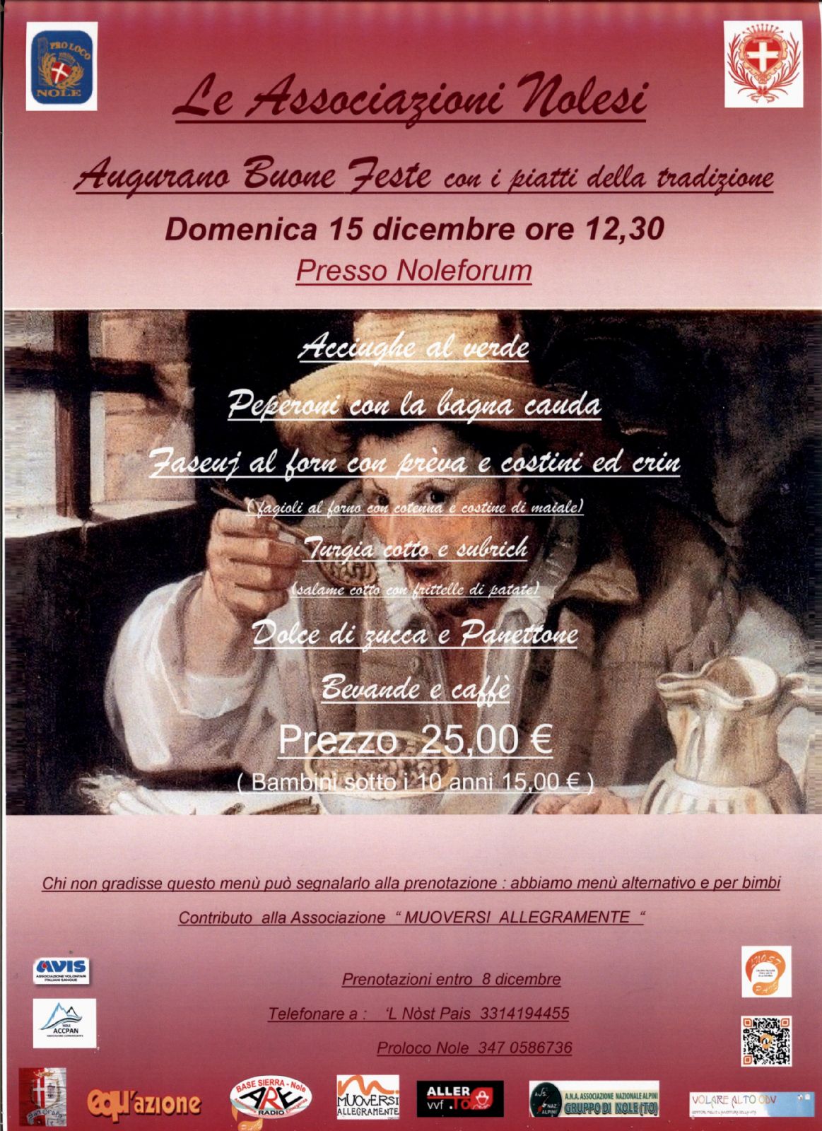 Domenica 15 dicembre 2019 le associazioni nolesi porgeranno gli auguri di buone feste con i piatti della tradizione.