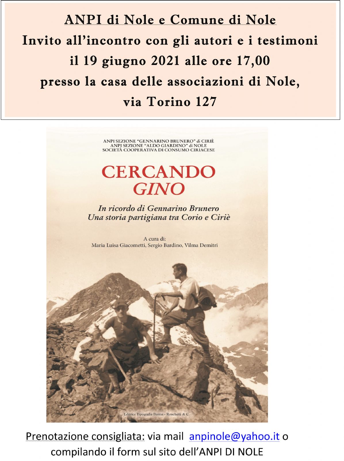 L'evento è organizzato dall'ANPI sezione "Aldo Giardino" di Nole, con il patrocinio del Comune di Nole.