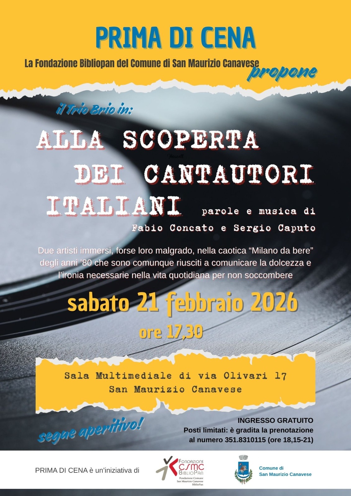 Torna "Prima di cena", la rassegna di eventi preserali proposta dal Comune di San Maurizio Canavese attraverso la sua Fondazione CSMC BiblioPan.