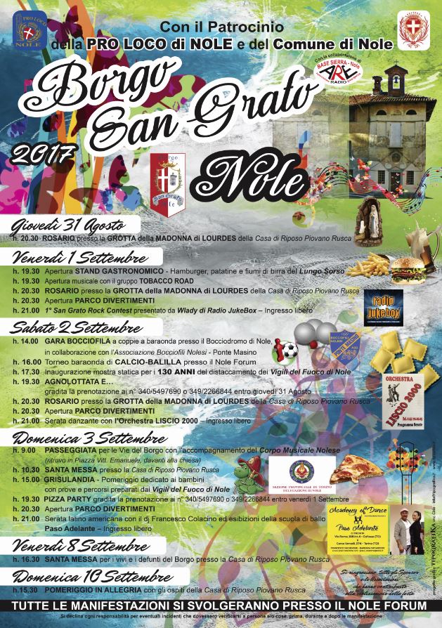 Il Borgo San Grato rende noto il programma per i festeggiamenti. Il programma è scaricabile.