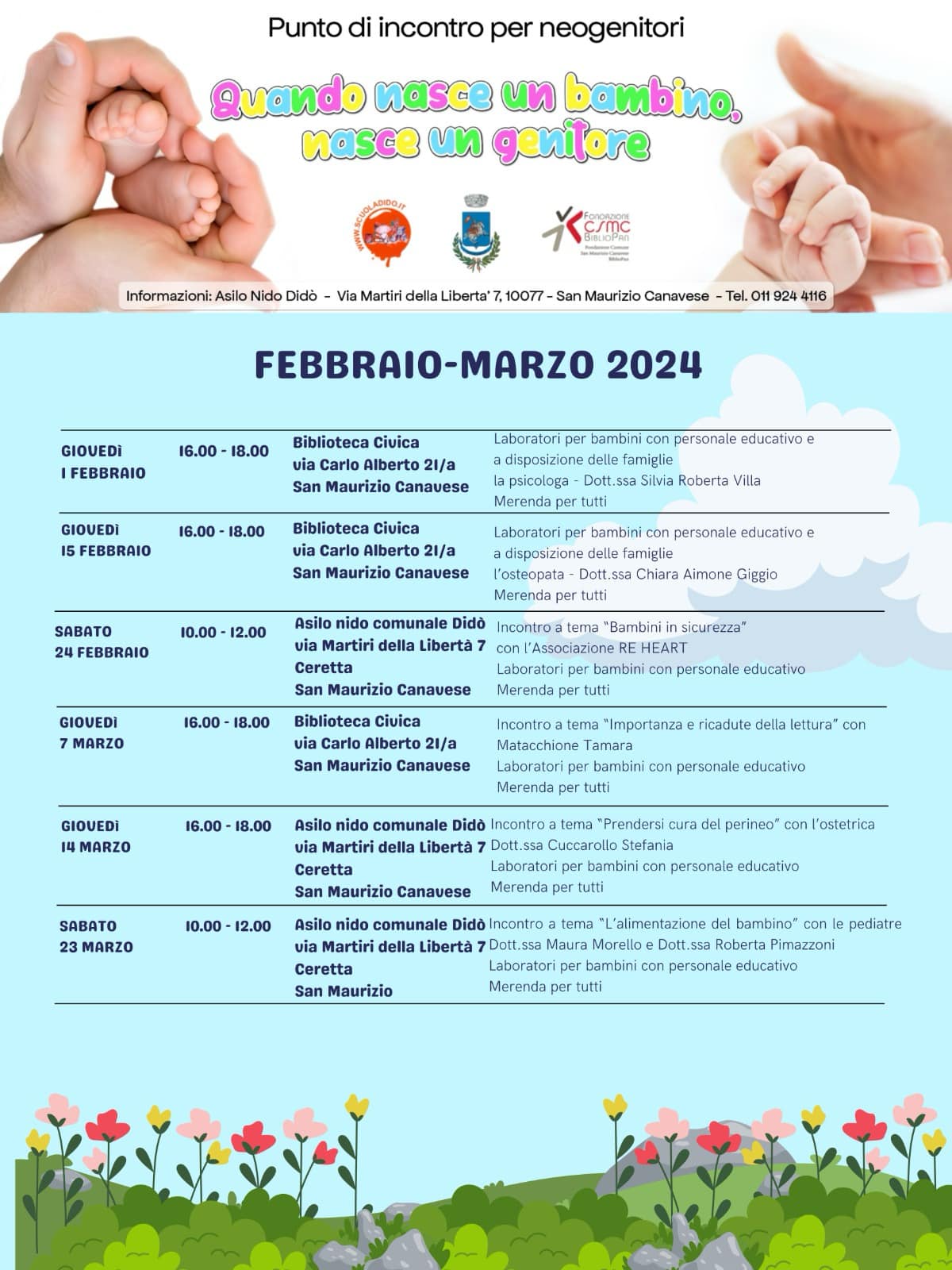 Torna “Quando nasce un bambino nasce un genitore”, il progetto dedicato ai genitori di bambine e bambini da zero a tre anni residenti a San Maurizio Canavese. L'iniziativa, nata dalla collaborazione fra il Comune, la rete dei servizi presente sul territorio e la Didò srl che gestisce il nido d’infanzia comunale, mira a rafforzare il sistema di sostegno alla genitorialità per supportare le famiglie del paese e accompagnarle nei primi "mille giorni" di vita dei propri figli.