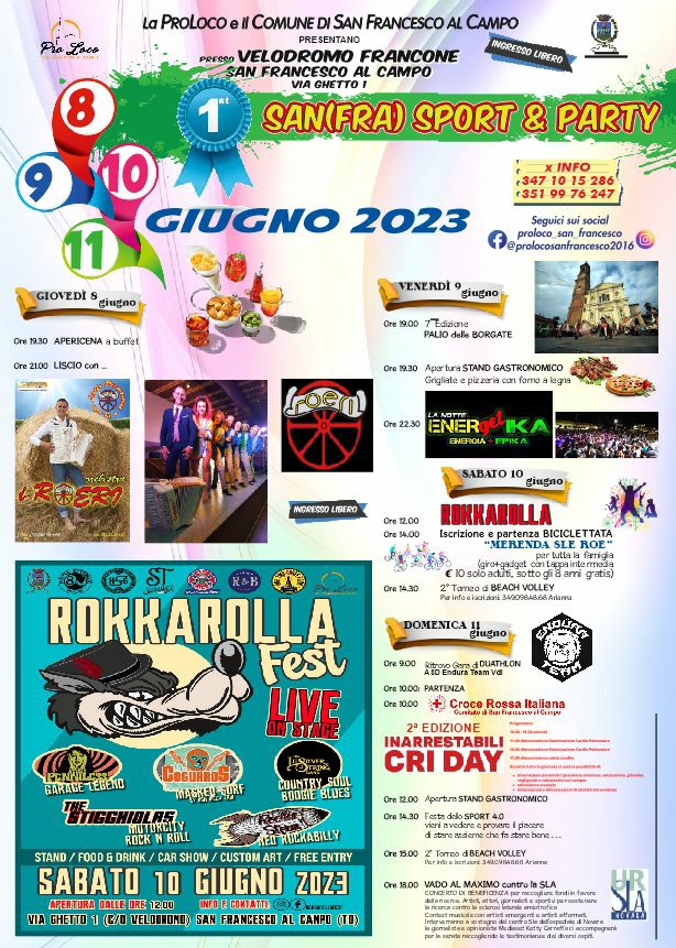 La ProLoco e il Comune di San Francesco al Campo organizzano la 1ª edizione di San(Fra) Sport & Party presso il Velodromo Francone.