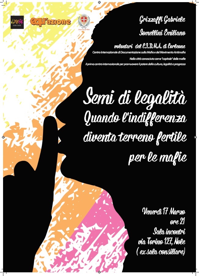 Venerdì 17 marzo, alle ore 21,00 presso la sala incontri di Via Torino 127 (Casa delle Associazioni "Teol. Michelangelo Chiaretta"), in concomitanza con la "XXII Giornata della memoria e dell'impegno in ricordo delle vittime innocenti delle mafie", promossa da Libera, Equ'Azione si inserisce nell'elenco degli appuntamenti programmati in preparazione a questa giornata con una serata a tema "SEMI DI LEGALITA' - quando l'indifferenza diventa terreno fertile per le mafie".