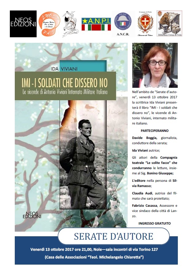 Nell’ambito de “Serate d’autore”, venerdì 13 ottobre 2017 ore 21,00 la scrittrice Ida Viviani presenterà il libro “IMI - I soldati che dissero no”, le vicende di Antonio Viviani, Internato militare italiano.