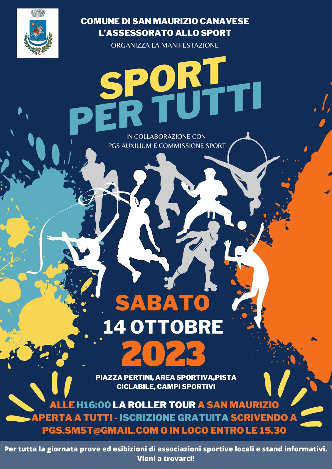 Nel fine settimana dedicato alla nostra grande Fiera d'autunno, spazio anche a "Sport per tutti", la bella iniziativa per provare una disciplina sportiva e divertirsi insieme. Organizza il Comune di San Maurizio Canavese in collaborazione con la Commissione Sport e PGS Auxilium. Vi aspettiamo nella nostra "area sportiva", tra piazza Pertini, i campi sportivi e la pista ciclabile.