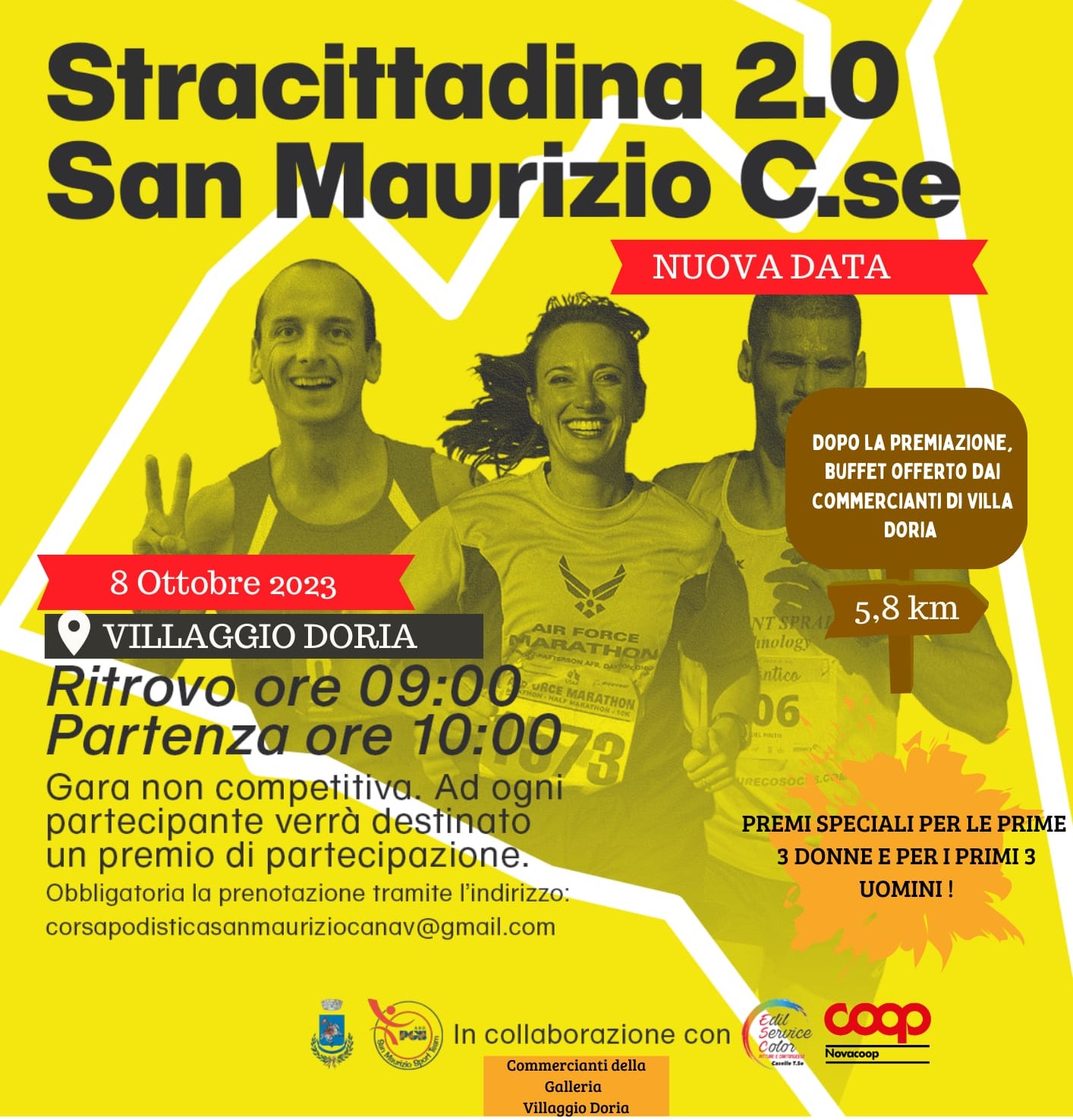 Si svolgerà domenica 8 ottobre la Stracittadina di San Maurizio Canavese, inizialmente prevista per il 17 settembre ma poi rinviata in seguito al grave incidente aereo accaduto il giorno precedente. Si tratta di una manifestazione non competitiva e aperta a tutti. Il ritrovo sarà alle 9 a Villadoria (la partenza sarà in via Alessandria). La partecipazione è gratuita, basta iscriversi inviando una mail a corsapodisticasanmauriziocanav@gmail.com