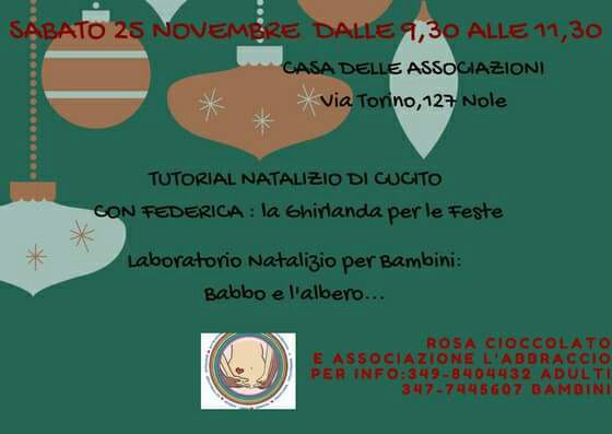 Sabato 25 novembre 2017, dalle ore 9,30 alle ore 11,30, presso la casa delle associazioni di via Torino 127, Rosa Cioccolato e Associazione "L'Abbraccio" terranno un "TUTORIAL NATALIZIO DI CUCITO".