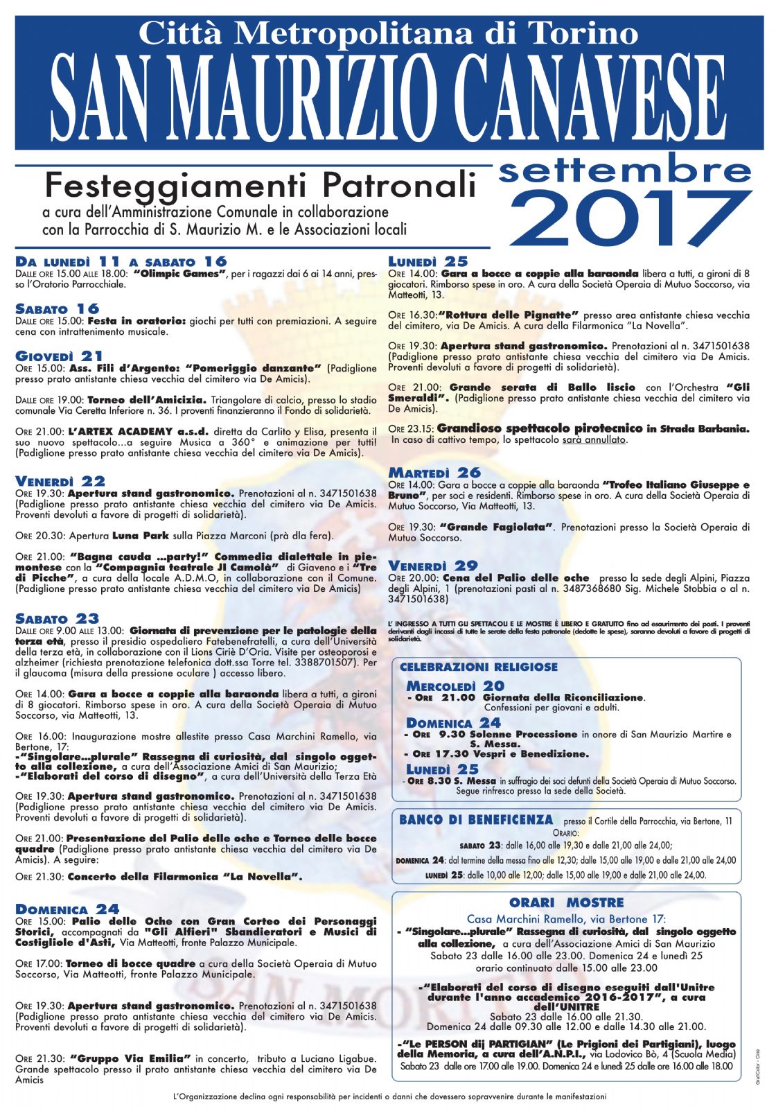 E' tutto pronto per la Festa Patronale 2017! Organizza, come di consueto, l'Amministrazione comunale in collaborazione con la parrocchia di San Maurizio Martire e le associazioni del paese.