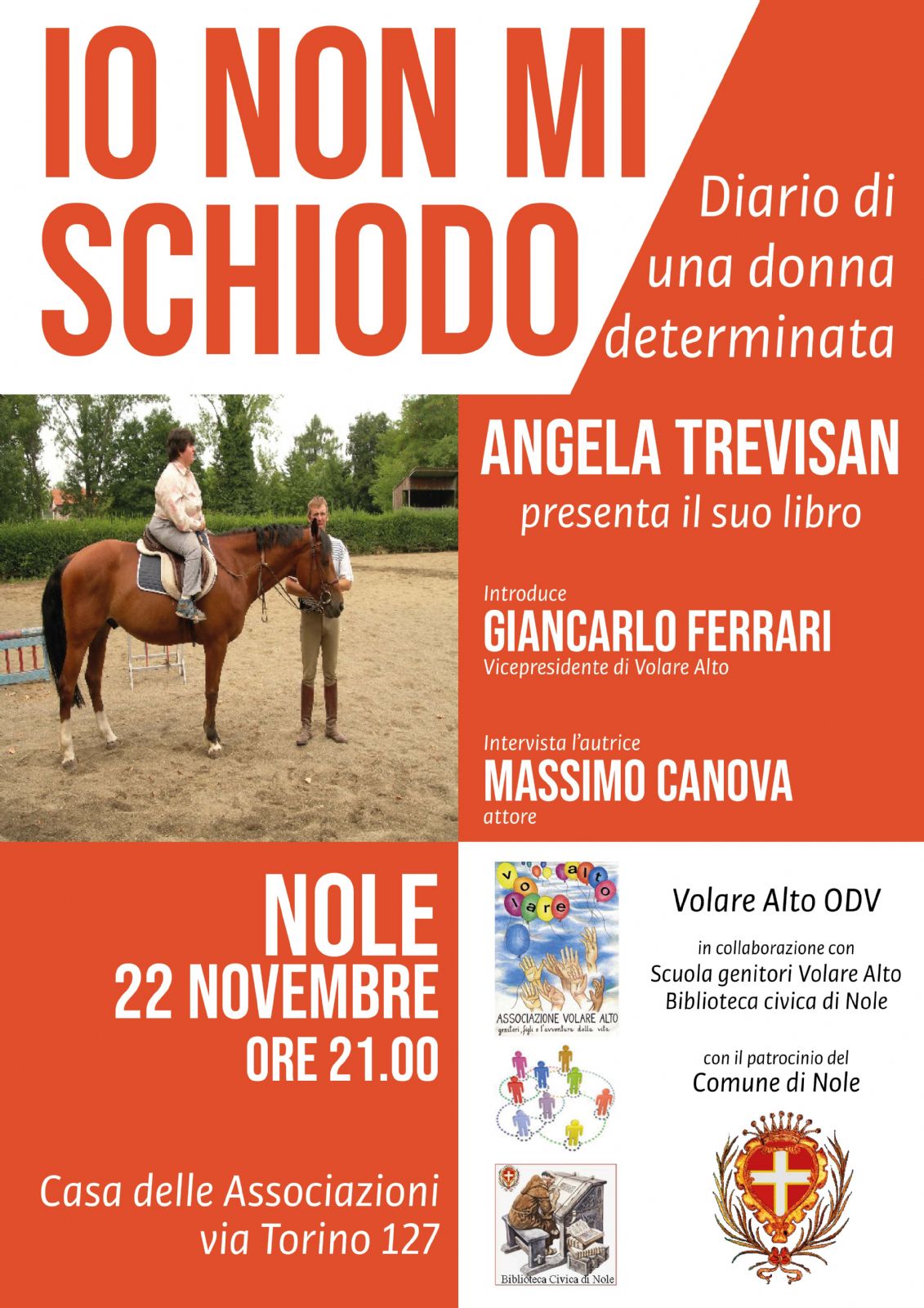 La serata è organizzata da "Volare alto" ODV, in collaborazione con la Scuola genitori Volare Alto e Biblioteca Civica di Nole.