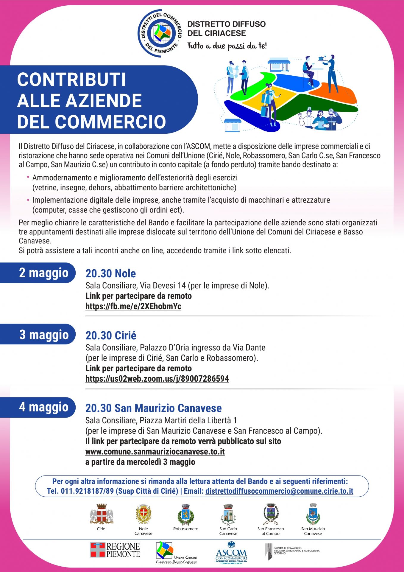 Tel. 011.9218187/89 (Suap Città di Cirié) / email: distrettodiffusocommercio@comune.cirie.to.it