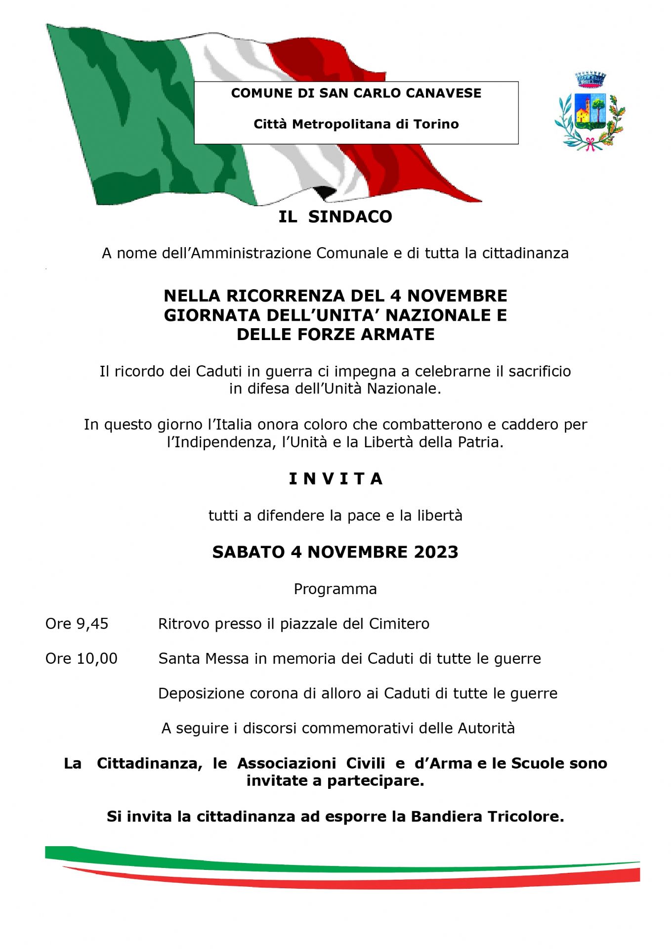 4 NOVEMBRE - Giornata dell'Unità Nazionale e delle Forze Armate