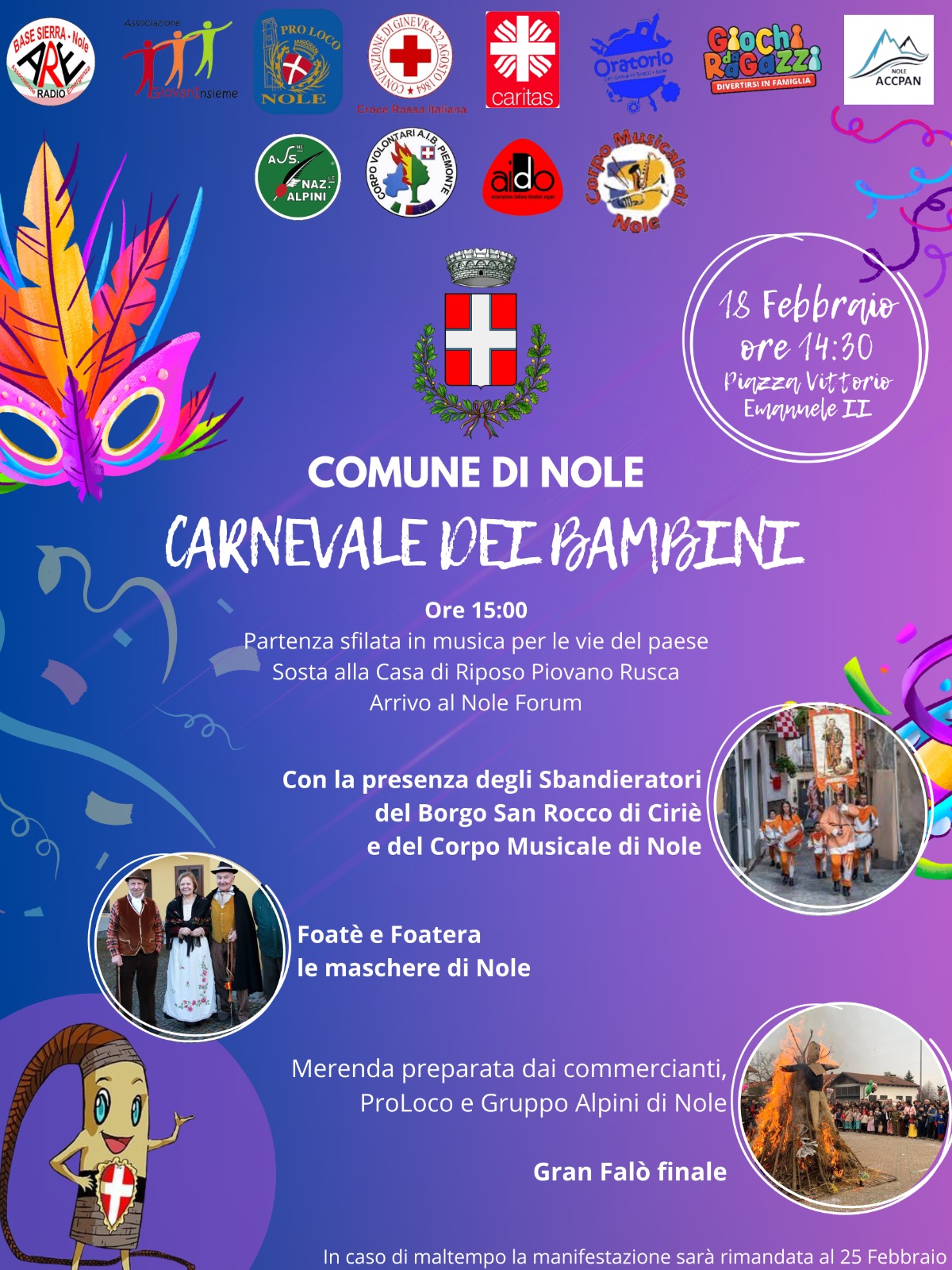 Si invita la cittadinanza a partecipare al Carnevale dei bambini con merenda e gran falò finale.
