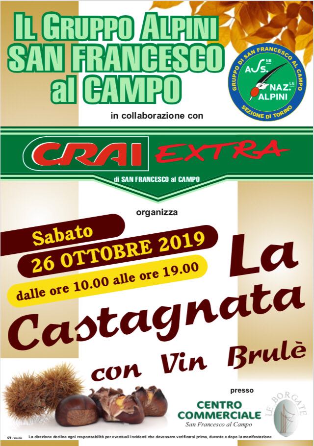 Appuntamento sabato 26 ottobre dalle 10 alle 19 presso il Centro Commerciale «Le Borgate» di San Francesco al Campo. L'iniziativa, aperta a tutti, è organizzata dal Gruppo Alpini di San Francesco al Campo in collaborazione con Crai Extra di San Francesco al Campo.