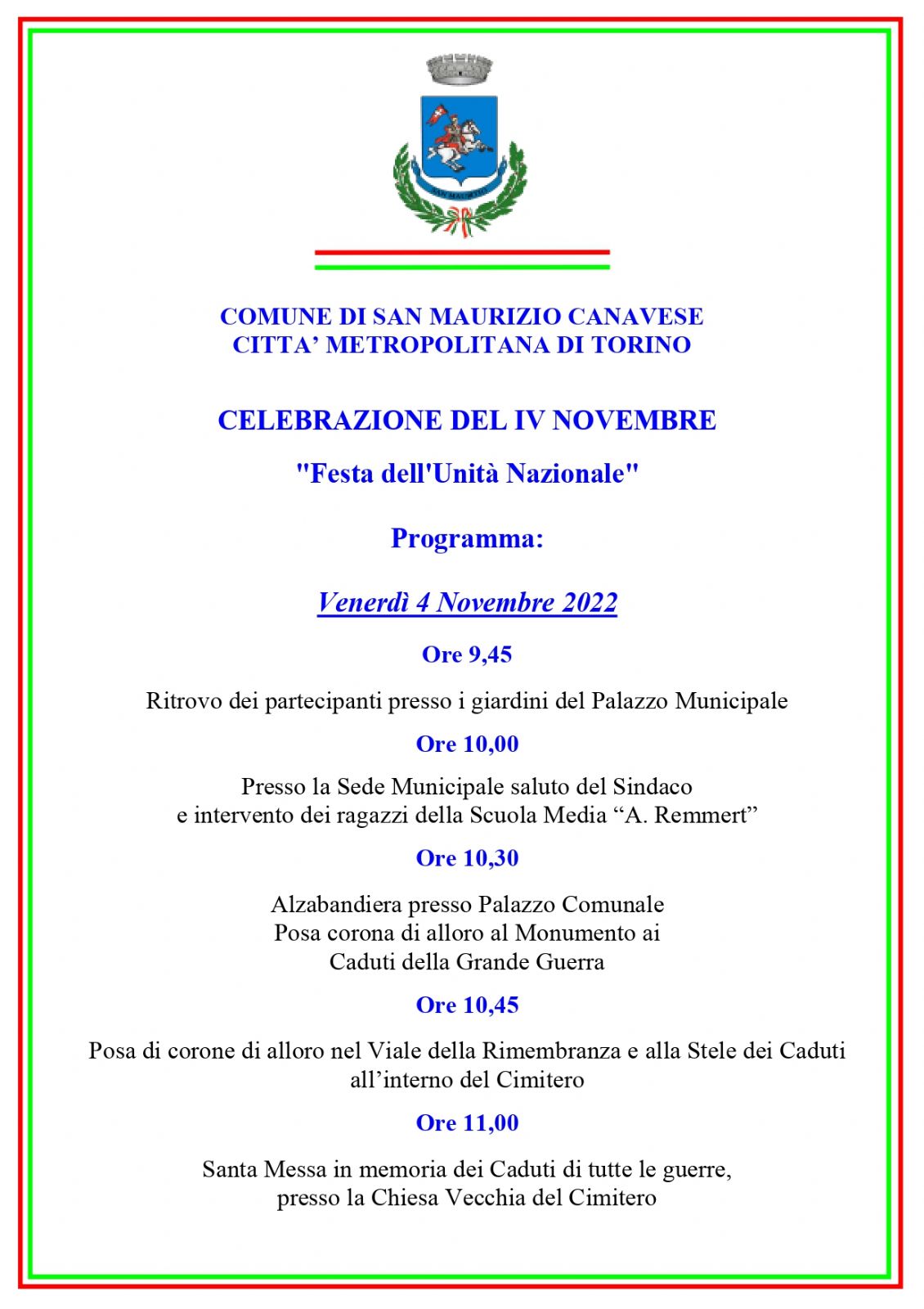 Domani, venerdì 4 novembre, il nostro Comune solennizzerà il giorno dell'Unità Nazionale, ricordando i propri Caduti in guerra e celebrando i valori della pace e dell'uguaglianza.