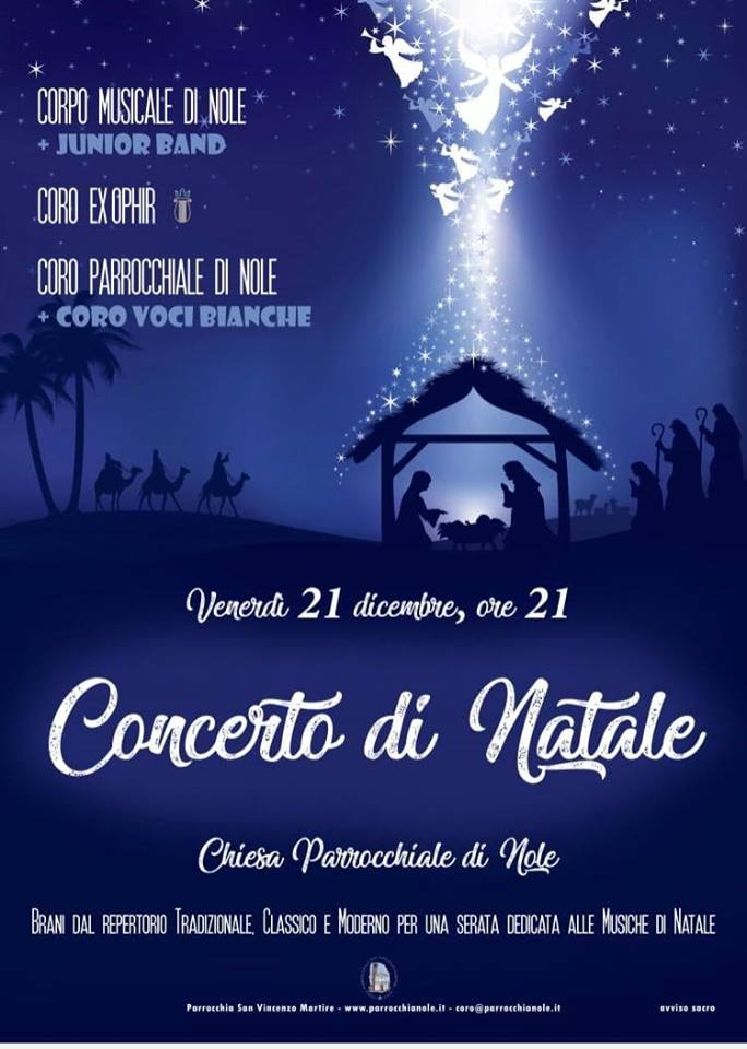 Venerdì 21 dicembre 2018, alle ore 21,00, presso la chiesa parrocchiale di Nole si terrà in concerto di Natale, con l'esecuzione di brani dal repertorio tradizionale classico e moderno, per una serata dedicata alle musiche di Natale.