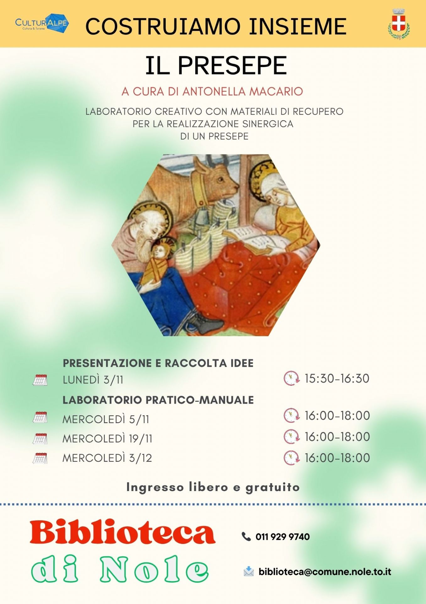 La Biblioteca di Nole ti invita a partecipare a un laboratorio creativo a cura di Antonella Macario, dedicato alla realizzazione di un presepe con materiali di recupero.