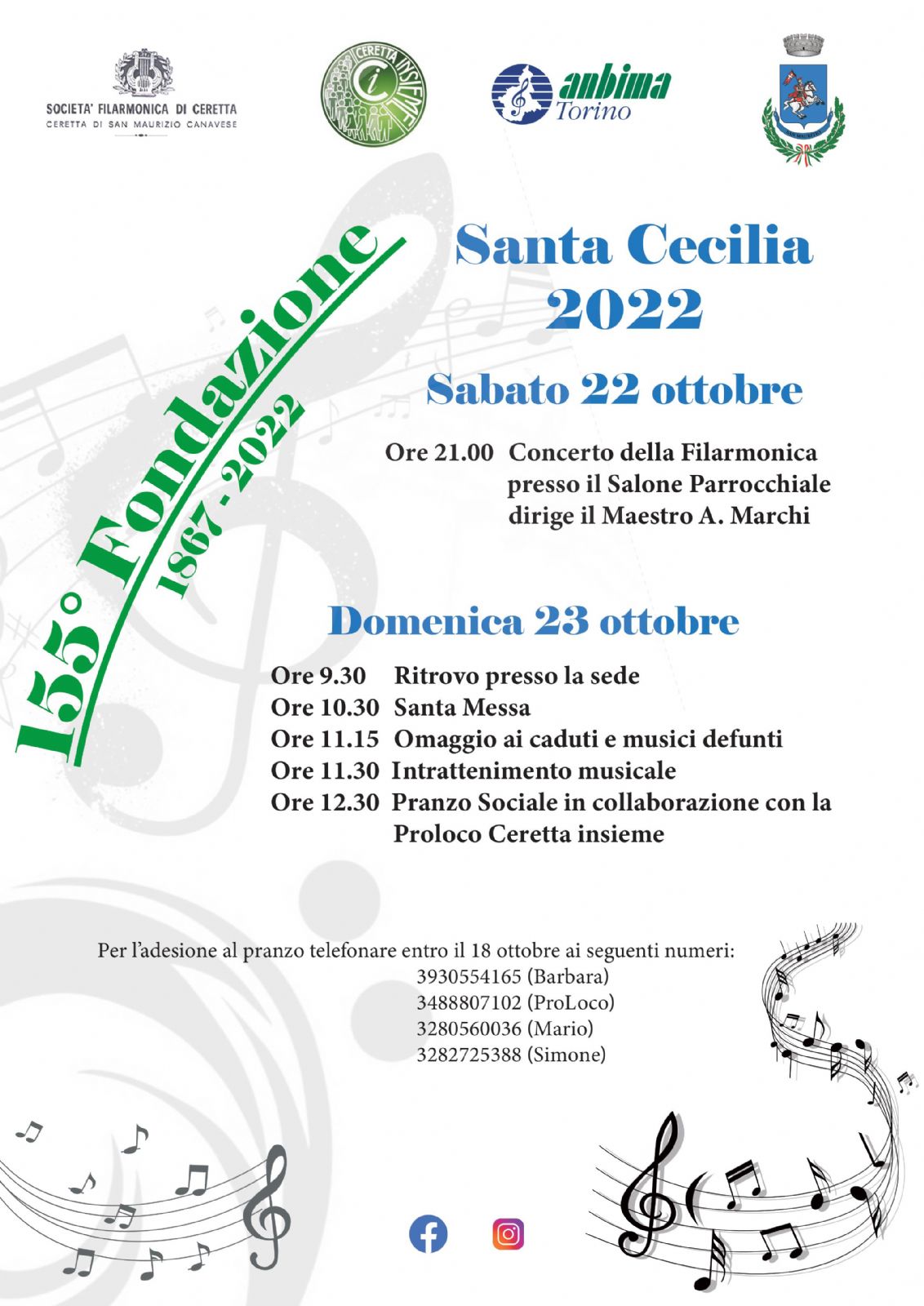 Sabato 22 e domenica 23 ottobre, grande festa di Santa Cecilia con la Filarmonica Cerettese nel 155° anniversario della fondazione.