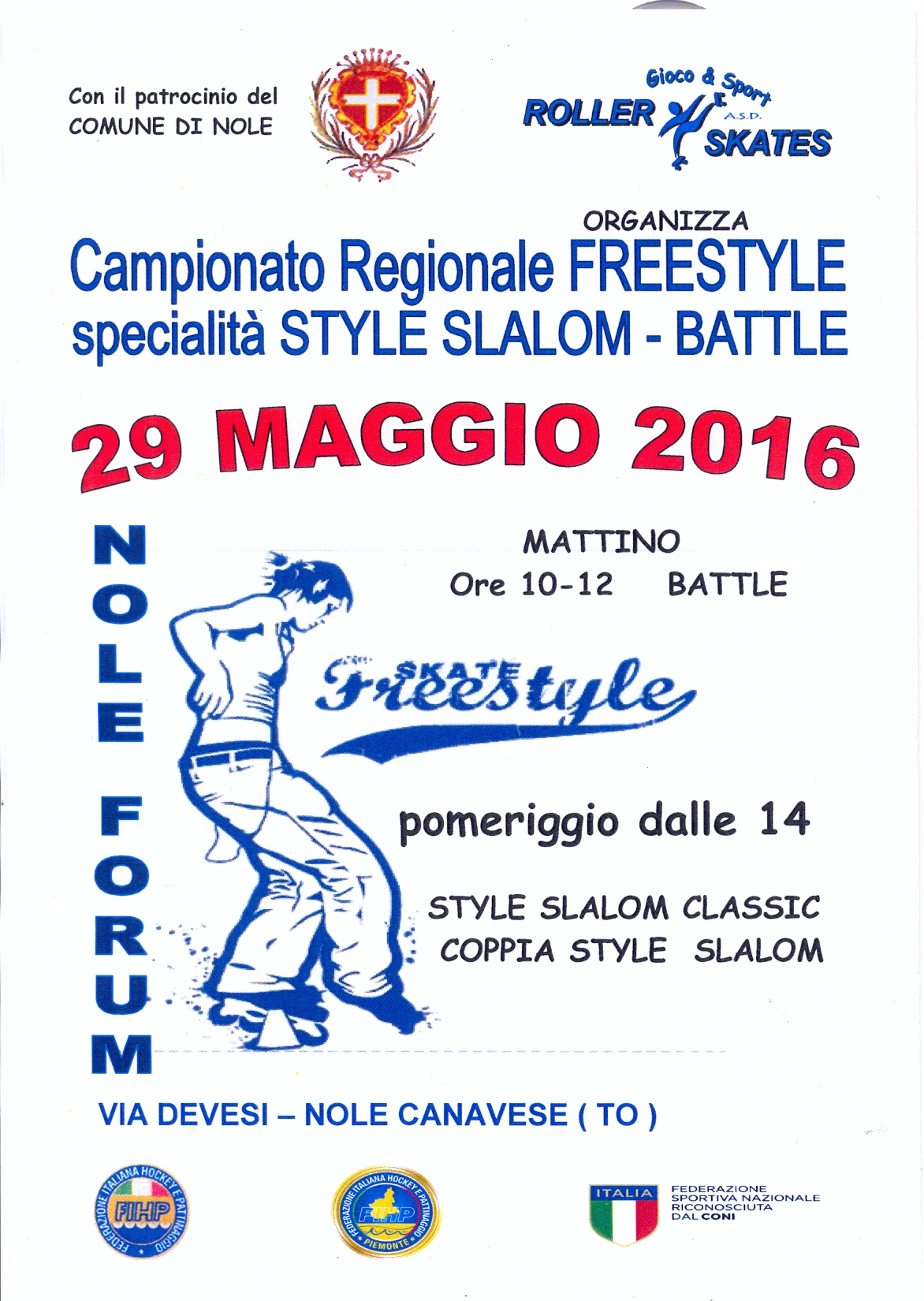 Domenica 29 maggio 2016, presso il centro polivalente "Nole forum" di via Devesi (ex Erber) si terrà il campionato regionale skate FREESTYLE.