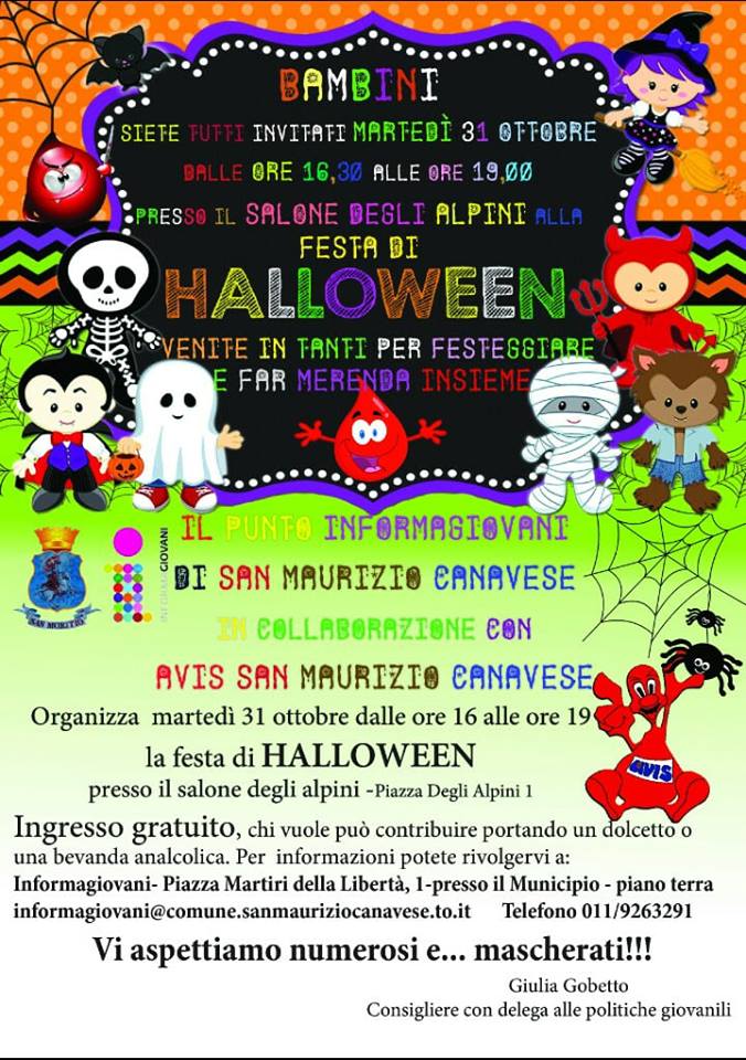 Il Punto Informagiovani, in collaborazione con l'Avis, organizza la festa di Halloween per tutti i bambini del paese. L'appuntamento è domani, martedì 31 ottobre, dalle ore 16 alle ore 19, nel salone della sede degli Alpini (Piazza degli Alpini, 1). L'ingresso è gratuito.