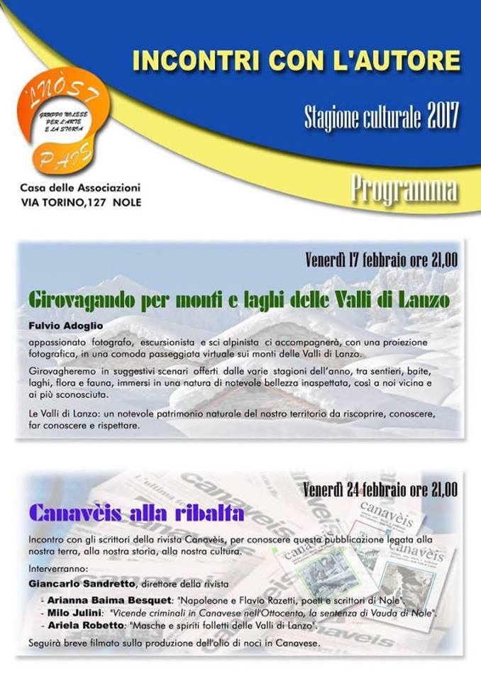 -Venerdì 24 febbraio 2017 "CANAVÈIS ALLA RIBALTA", incontro il direttore Giancarlo Sandretto e con gli scrittori della rivista "Canavèis": Arianna Baima Besquet, Milo Julini e Ariela Robetto.