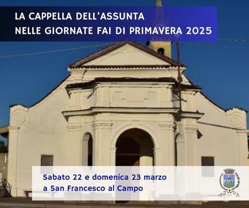 Anche la nostra antica Cappella dell'Assunta in borgata Madonna sarà fra i gioielli storici e architettonici aperti al pubblico questo fine settimana nell'ambito delle Giornate FAI di Primavera. Visite guidate sabato 22 (ore 14-18, ultimo ingresso 17.30) e domenica 23 marzo (ore 10-13, 14-18, ultimo ingresso 17.30).