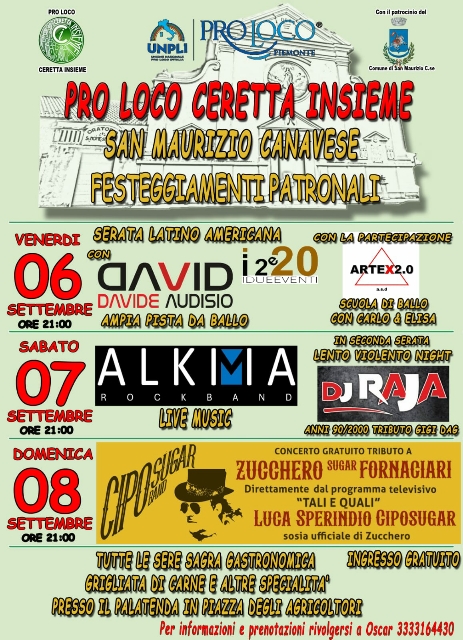 E se dopodomani s'inaugura la festa in onore di San Grato a Malanghero, ecco che Ceretta "scalda i motori" per la settimana prossima: la tradizionale patronale cerettese si svolgerà da venerdì 6 a domenica 8 settembre.