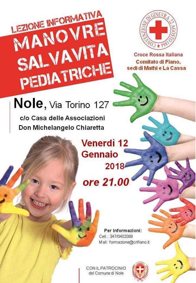 VENERDì 12 GENNAIO 2018, ALLE ORE 21,00, presso la "Sala Incontri" di via Torino 127 (Casa delle Associazioni), la CRI terrà una lezione informativa GRATUITA aperta a tutta la popolazione di qualsiasi età SULLE MANOVRE PEDIATRICHE SALVAVITA.