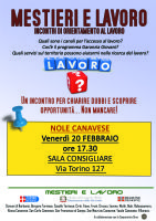 Nell'ambito del progetto MESTIERI E LAVORO l'assessorato alle politiche giovanili e alle politiche del lavoro, in collaborazione con Informagiovani, organizzano per venerdì 20 febbraio ore 17,30 presso la sala consiliare del comune di Nole, un incontro informativo sul tema dell’accesso al lavoro giovanile, con presentazione dei Servizi territoriali, dei progetti e delle opportunità di lavoro e formazione presenti sul territorio.