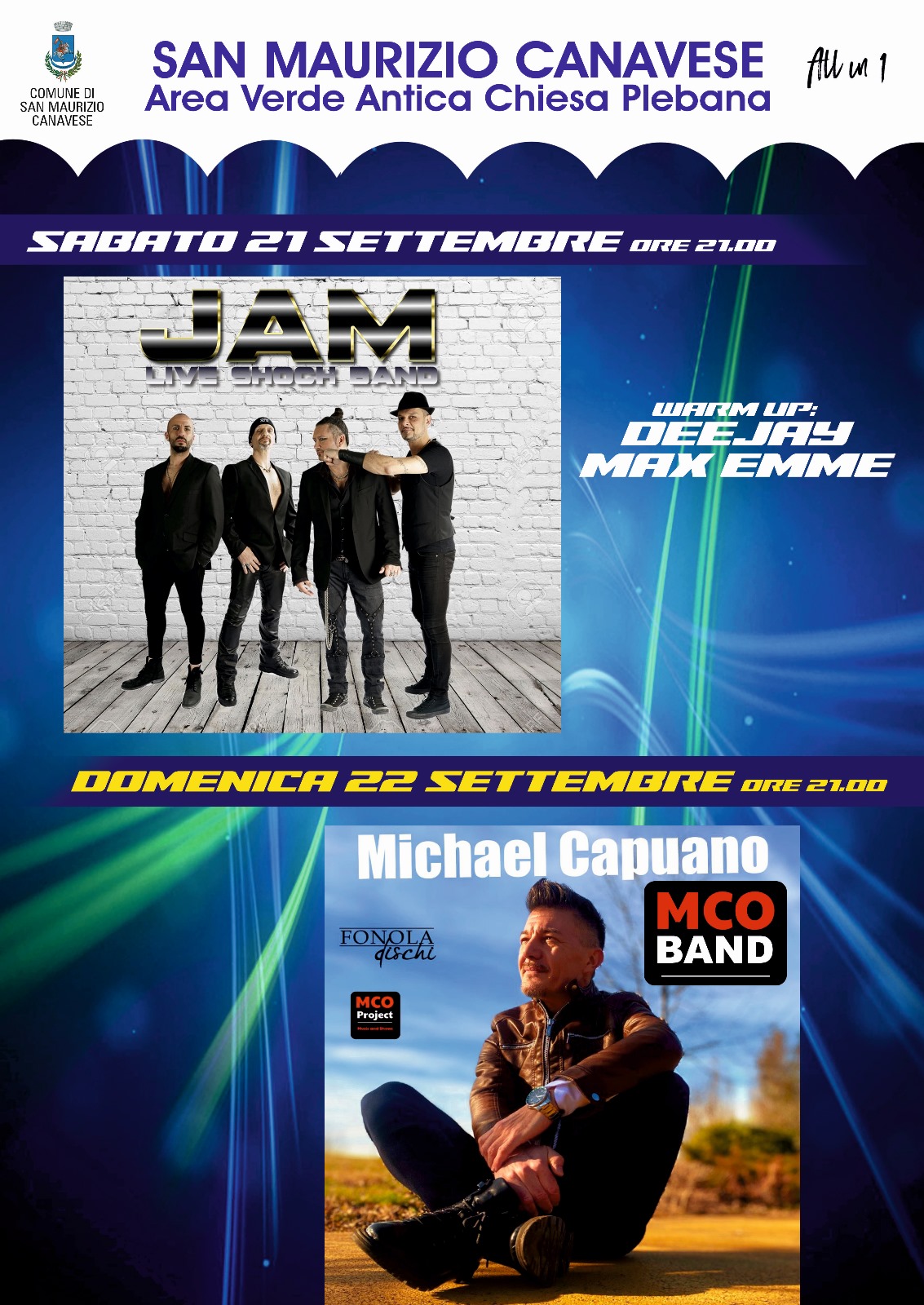 - Sabato 21 settembre, ore 21, Jam live shock band, viaggio nella storia della musica dance dagli anni 80 alle hit dei giorni nostri.