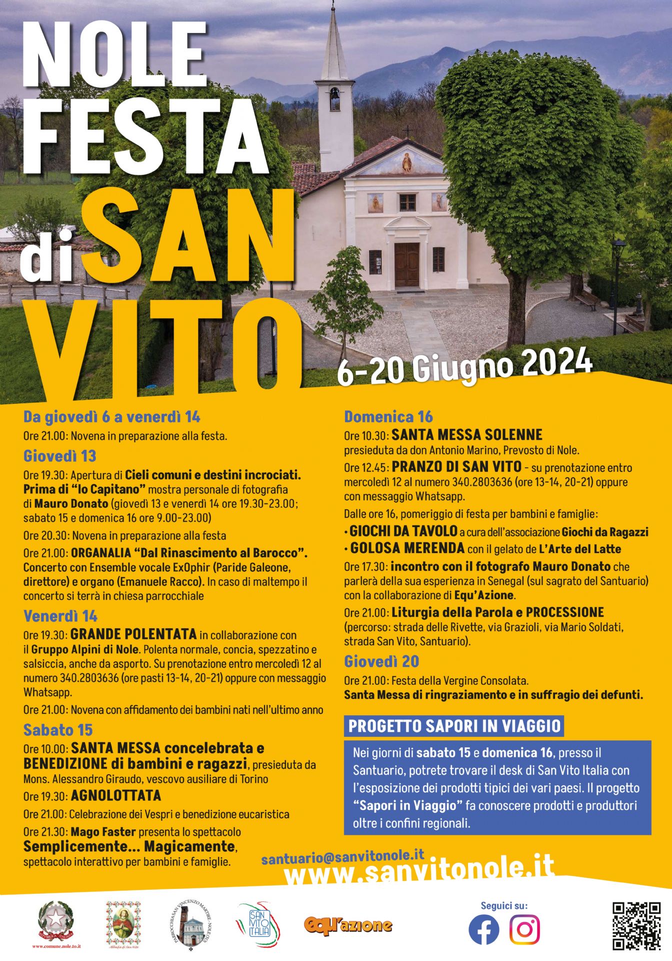 Dal 6 giugno a 20 giugno 2024 si terrà la tradizionale festa di San Vito Martire, compatrono di Nole, si invita pertanto la cittadinanza a parteciparvi.